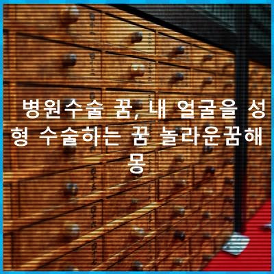 이번 꿈해몽은 병원수술 꿈, 내 얼굴을 성형 수술하는 꿈 놀라운꿈해몽 유사꿈, 관련꿈 해몽모음입니다.
