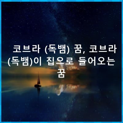 정리드린 꿈해몽내용은 코브라 (독뱀) 꿈, 코브라 (독뱀)이 집으로 들어오는 꿈 입니다. 이 글이 꿈해몽 찾으셨던분께 좋은 내용이 될수있길 바랍니다.