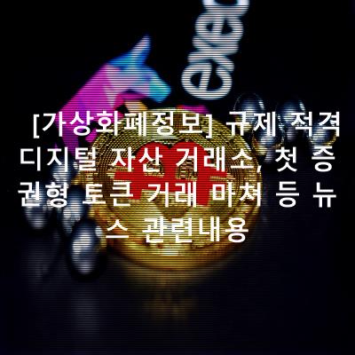 [가상화폐정보] 규제 적격 디지털 자산 거래소, 첫 증권형 토큰 거래 마쳐 등 뉴스 관련내용 입니다. 찾으셨던분께 조금씩이라도 도움이 될 수 있기를 바래요.