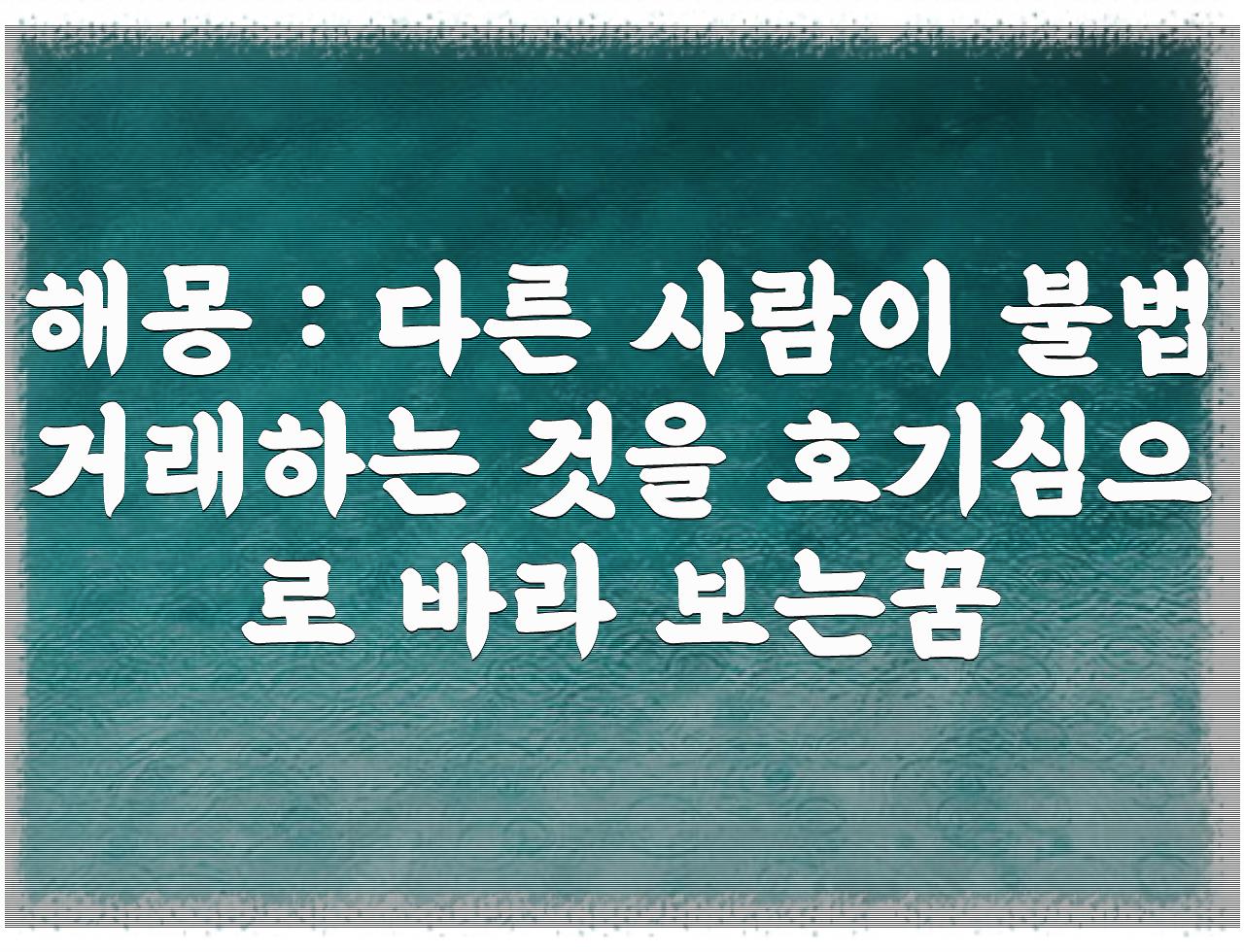 해몽 : 다른 사람이 불법 거래하는 것을 호기심으로 바라 보는꿈